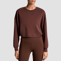 Open back yoga top long sleeve. Soft Modal Crossover sweatshirt. Loose fit gym cover up. Activewear manufacturer wholesale.