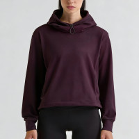 Women's high neck running pullover. Lightweight half zip gym hoodie. Bungee hem performance top. Custom athletic clothing.