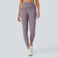 Fold Over Leggings - Lettuce Trim High Waisted Yoga Pants | Custom Leggings Manufacturer