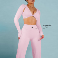 Second Skin Lounge Activewear Set Yoga Bolero Twist Front Sports Bra and Straight Leg Pants Factory