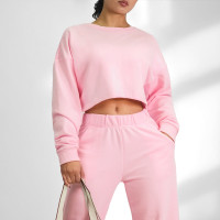 Ultra Soft Cotton Blend Open Back Split Cropped Sweatshirt and Matching Casual Sweatsuit
